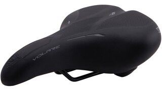 CONTEC zadel "Volare City EL" Presentatieverpakking, koudschuim, elastomeer demper, City / Tour, voor lichaamsgewicht tot max. 150 kg, unisex, zwart CrMo zadelrail, het 3-zones comfortPlus-systeem biedt in iedere zitpositie optimale comfort. Om tijdens het rechtop zitten vermoeidheid te voorkomen, liggen voor de dichte polsterzone een zachte comfortzone en een vlakke sportzone. De constant elastische koudschuim heeft een zeer gering gewicht en maakt het zadel vederlicht, kan slecht warmte opslaan, waardoor het zadeldek ook na intensieve zoninstraling snel weer afkoeld, 470 g i.› maten (L x B ) 245 x 205 mm
