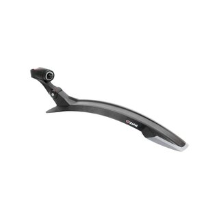 Zefal achter spatbord Deflector RM60, Kunststof achterspatbord voor 26'', Met instelbare snelbevestiging op de zadelpen, Montage zonder gereedschap. Met 2-componenten spoiler, Afstelbaar op twee punten (scharnieren), Geschikt voor zadelpen: 25 mm to 32 mm, Gewicht: 166 gram. Breedte: 66-72 mm, In zwart. Op displaykaart.